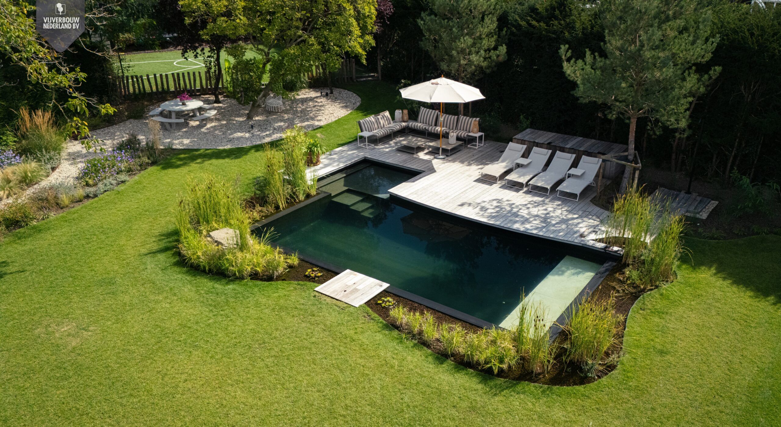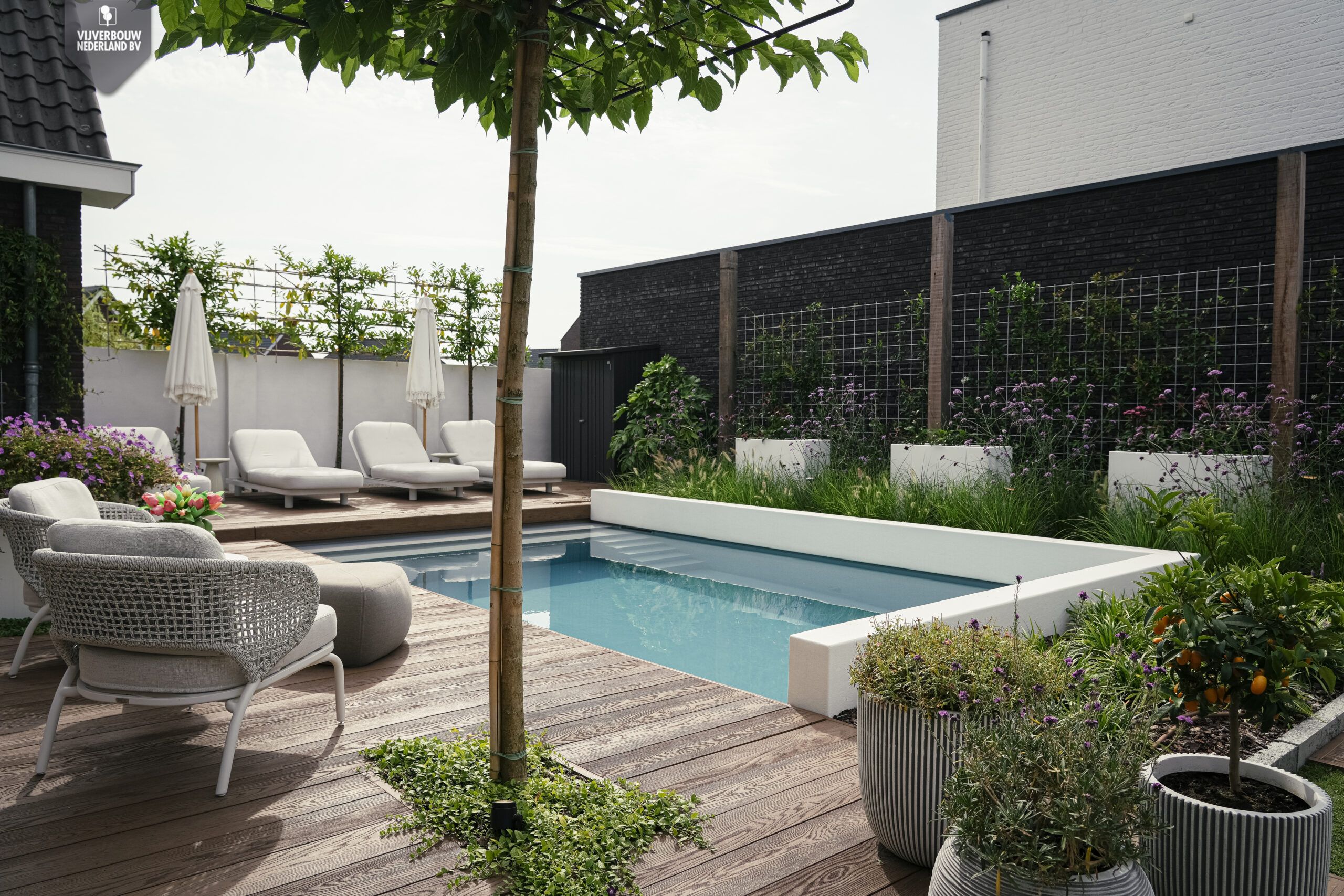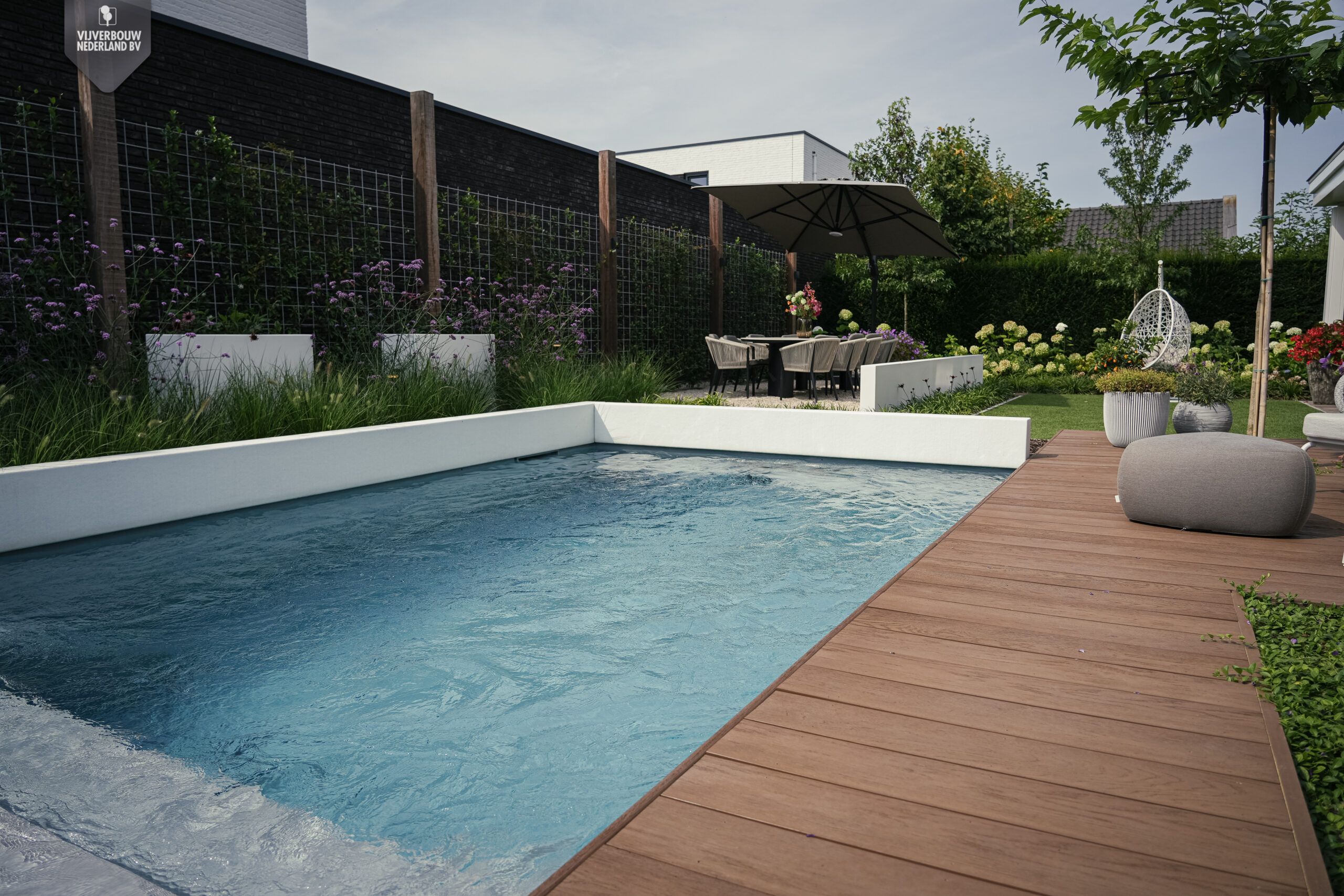 Een oase van rust, eenvoud en natuurlijke elegantie – dat is wat dit project uitstraalt. Deze prachtige (zwem)vijver combineert strak design met een ontspannen Ibiza-look. De rustige kleuren, zachte vormen en natuurlijke materialen zorgen samen voor een harmonieus geheel.