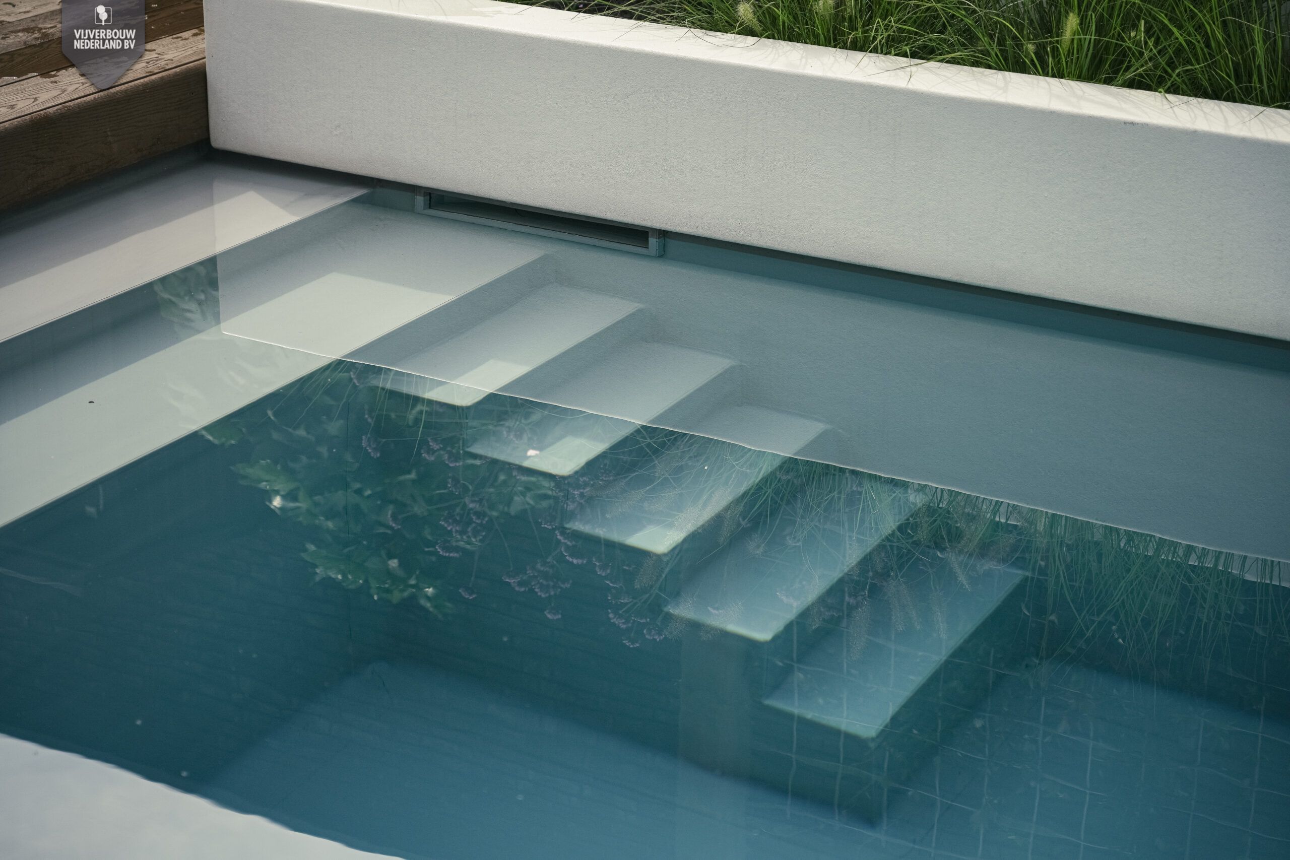 Strakke lijnen, natuurlijke beplanting en het heldere water creëren samen een serene sfeer waarin binnen en buiten naadloos in elkaar overlopen. Een plek om tot rust te komen – elke dag opnieuw.